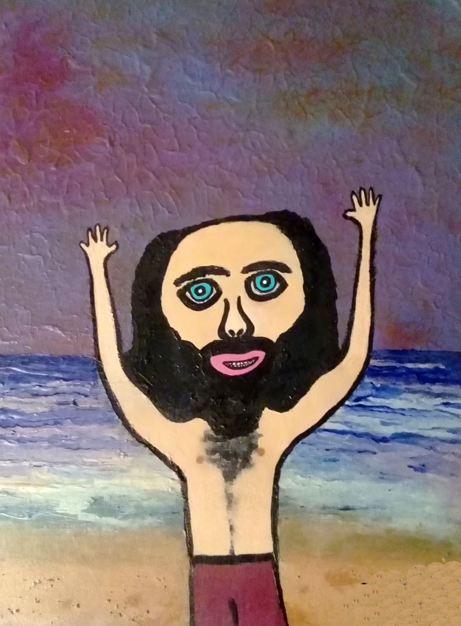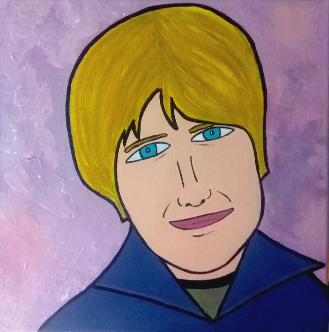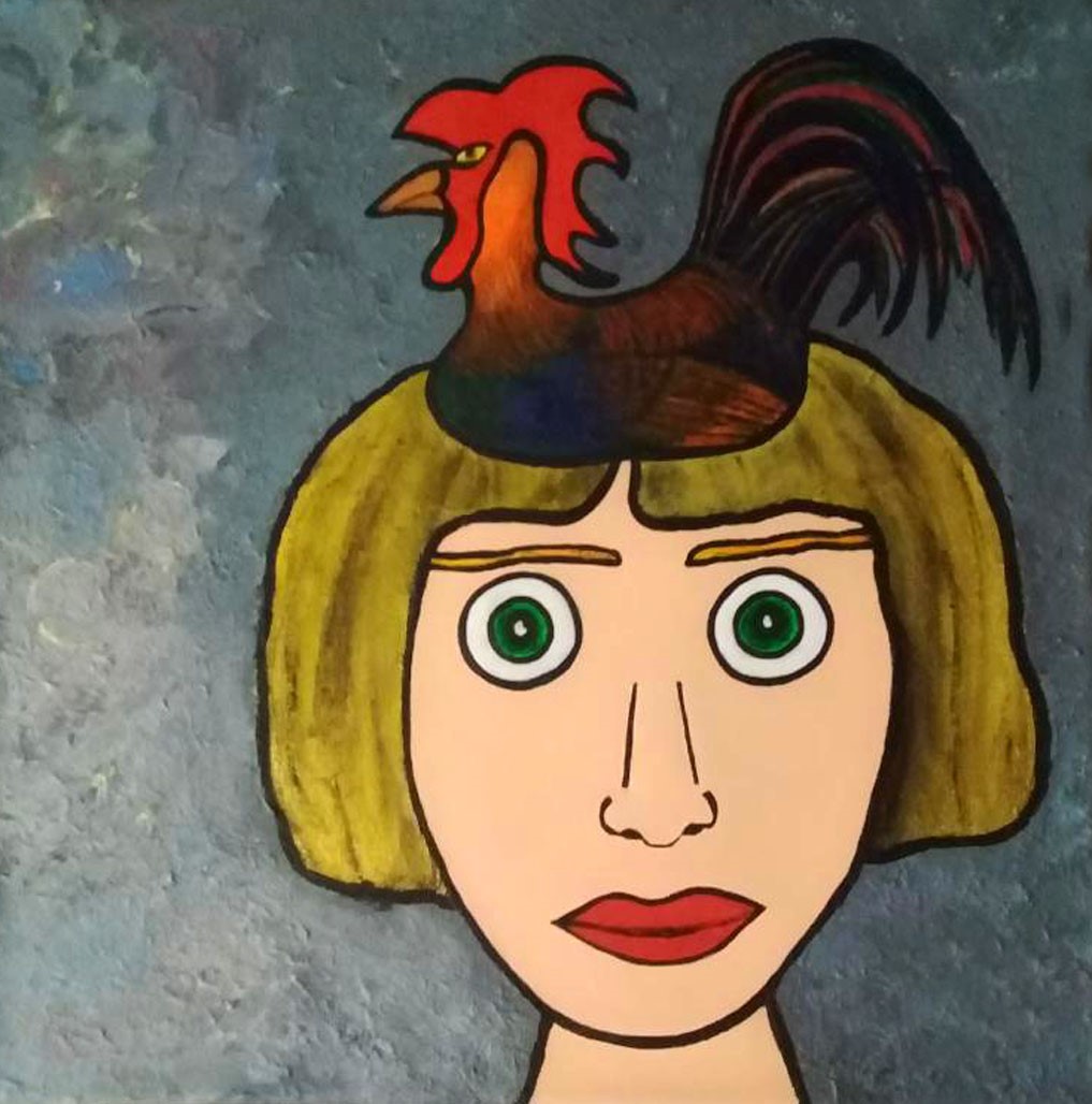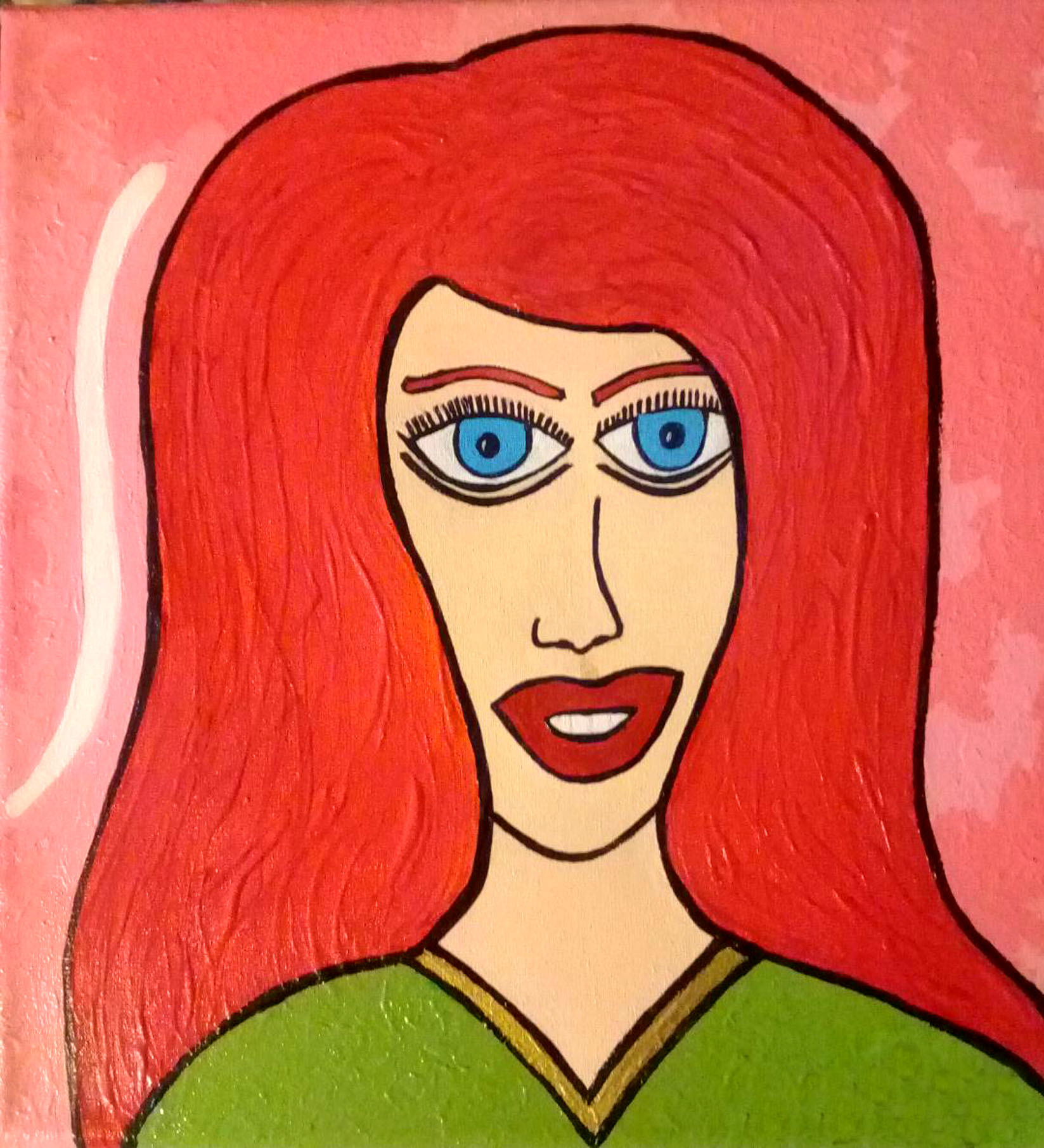 Volví a dibujar recién en el año 2015 para ilustrar a Cagliero (Libro de poesías). Por esos días, una tarde tomé un pequeño bastidor de los que usaba mi hija y con acrílico pinté mi primer cuadrito, un ovni sobre un prado de flores. Desde ese momento lo hago con continuidad, a veces para retratar a gente que conozco y otras para que seres incorpóreos se den a conocer por medio de los colores.