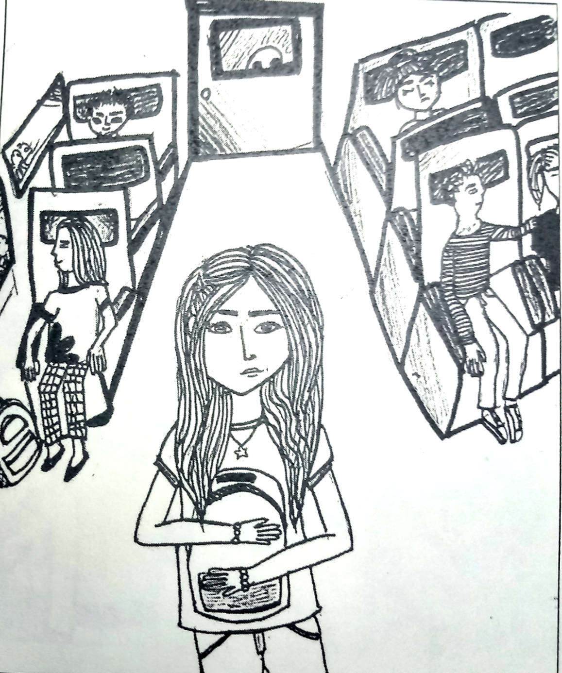 El tren se detuvo a las tres de la mañana. Subimos a un vagón de clase turista. En el portaequipajes dormían tres hombres; les ordené abrir los ojos. Una mujer apartó un bolso de mi camino. Tenía el pelo rojo y sus ojos eran dignos de ser idealizados: el amor es un proceso de selección de pareja. Dije que no le haría daño, que rastreábamos alienígenas, que todos los pasajeros estaban sospechados. Le pedí que levantara su brazo izquierdo. La temperatura media de los invasores está cinco grados por debajo de la nuestra. En el interior de su bolso además de ropa llevaba una pistola Walther CP99.